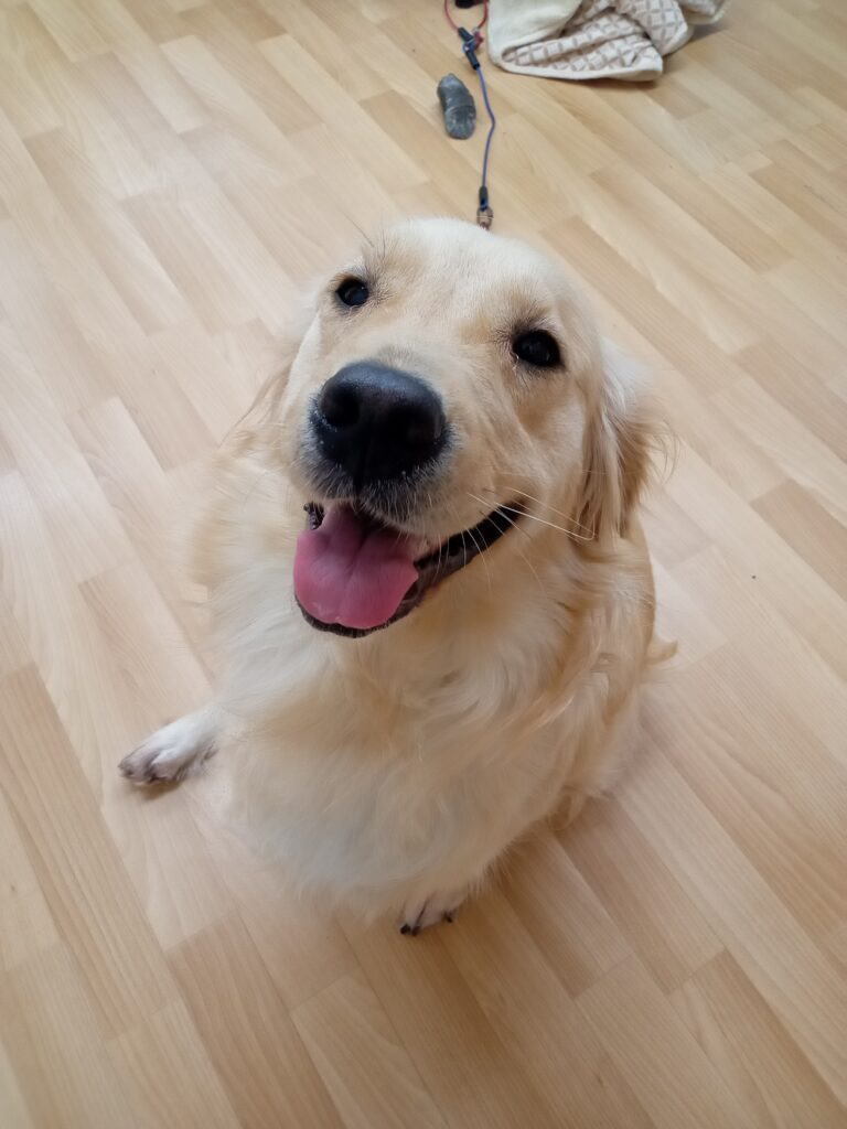成年後見の仕事でお邪魔している一宮市の有料老人ホームにいるゴールデンレトリバーのメス2歳のHANAちゃんです。